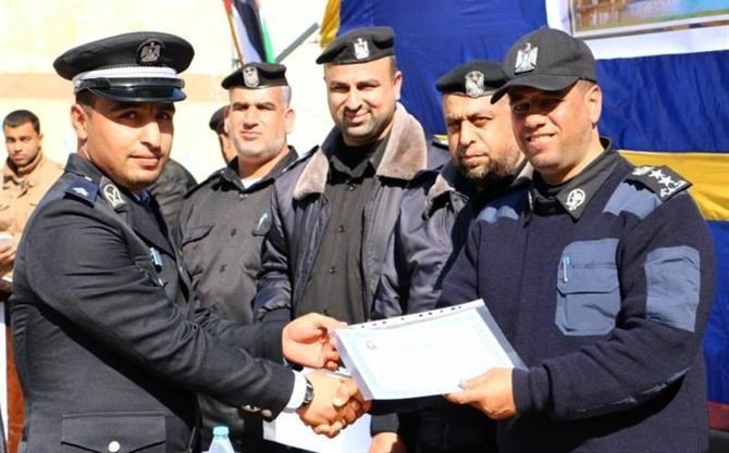 وحضر الطابور كل من العقيد جميل الدهشان مدير شرطة محافظة غزة ومدير المركز المقدم ماهر الحلبي ولفيف من ضباط المركز.