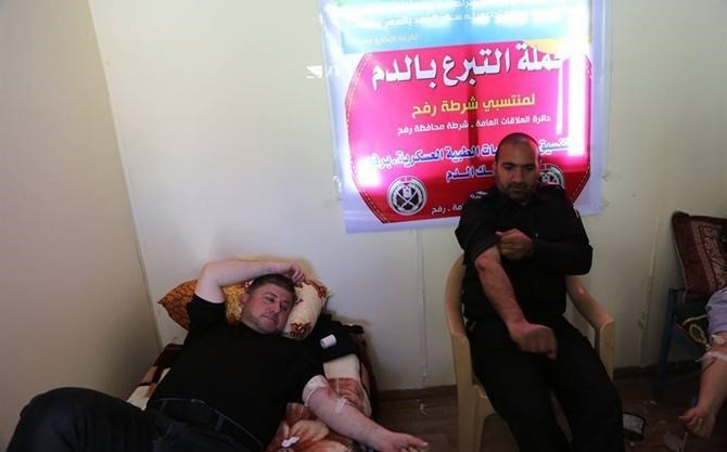 نظَّمت العلاقات العامة في الشرطة الفلسطينية بمحافظة رفح حملة للتبرع بالدم بالتعاون مع بنك الدم المركزي والخدمات الطبية العسكرية وذلك لسد احتياجات المواطنين وعناصر الشرطة من الدم .