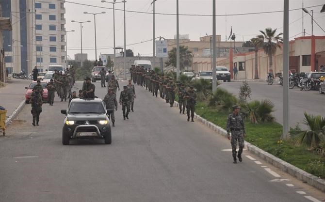 وانطلق المسير من مقر قيادة القوات "السرايا" باتجاه مفترق الطيران, ثم إلى مفترق أنصار الغربي وصولاً إلى شارع البحر, والعودة إلى مفترق السرايا.
