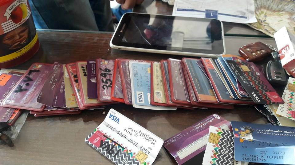 ألف شيكل من ضمنها جوالات وبطاقات لبنك فلسطين.