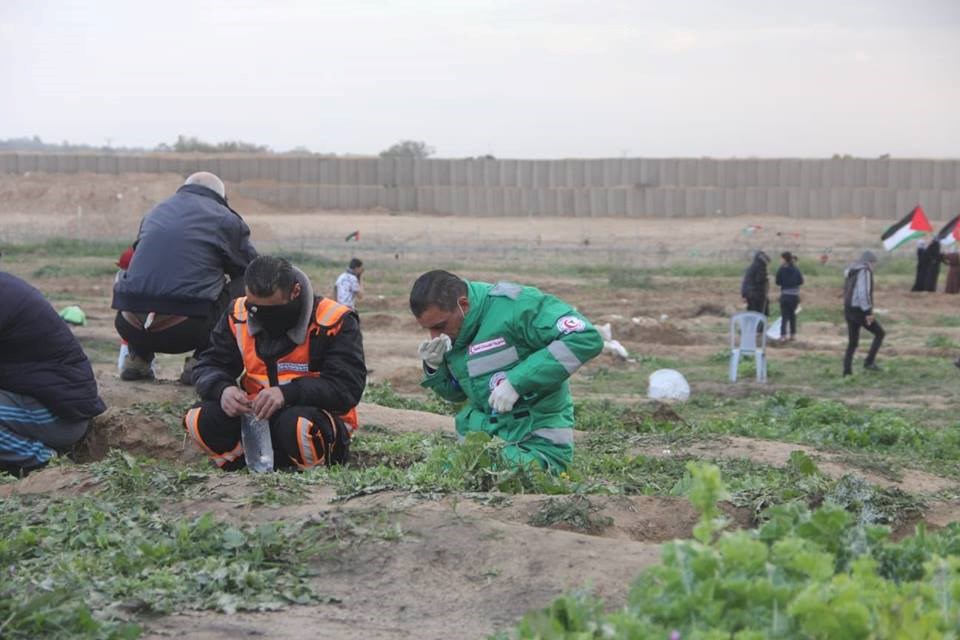المشاركين في الجمعة الـ 49، ونقلت عدد آخر منهم للنقاط الطبية في مخيمات العودة، فيما