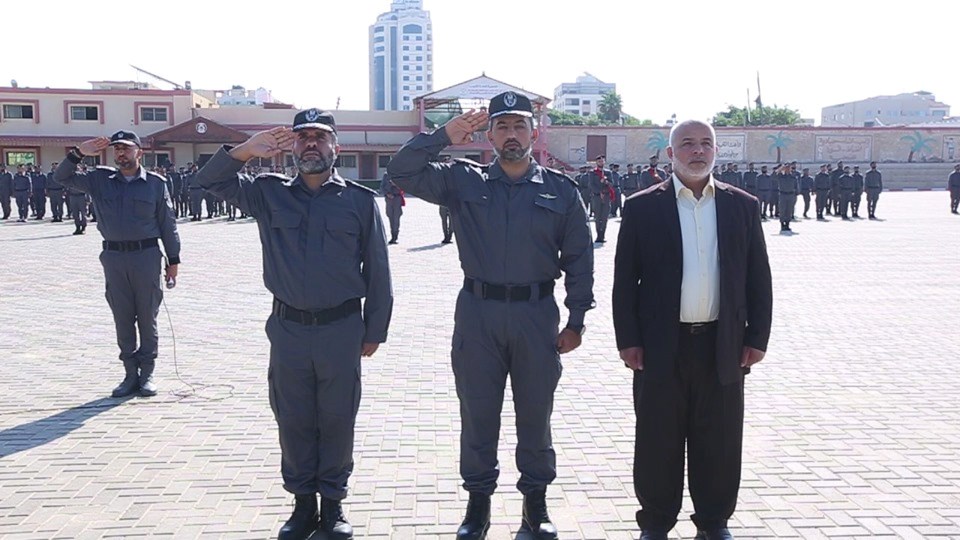الطابور وكيل وزارة الداخلية والأمن الوطني اللواء توفيق أبو نعيم ومدير عام