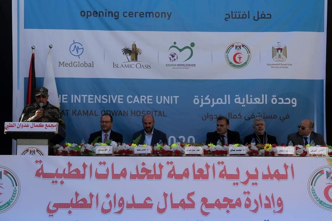 وشارك في حفل افتتاح القسم كل من نائب قائد قوات الأمن العام اللواء جمال الجراح، والوكيل المساعد لوزارة الصحة د. مدحت محيسن، ومدير الخدمات الطبية العميد د. محمد صالح ورئيس مؤسسة رحمة عبر العالم د. شادي ظاظا ونائبه أديب شويكي ورئيس مؤسسة ميديا غلوبل د. زاهر سحلول، وعدد من أعضاء المجلس التشريعي وممثلون عن المؤسسات الدولية والإنسانية والوجهاء والمخاتير وقادة الأجهزة الأمنية والطواقم الطبية بمجمع عدوان.