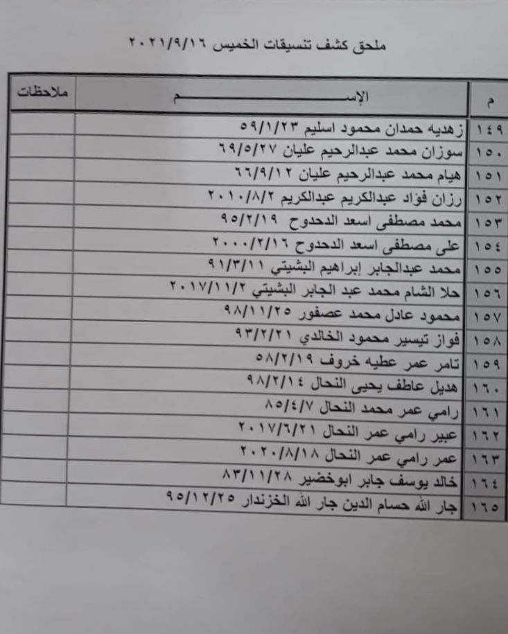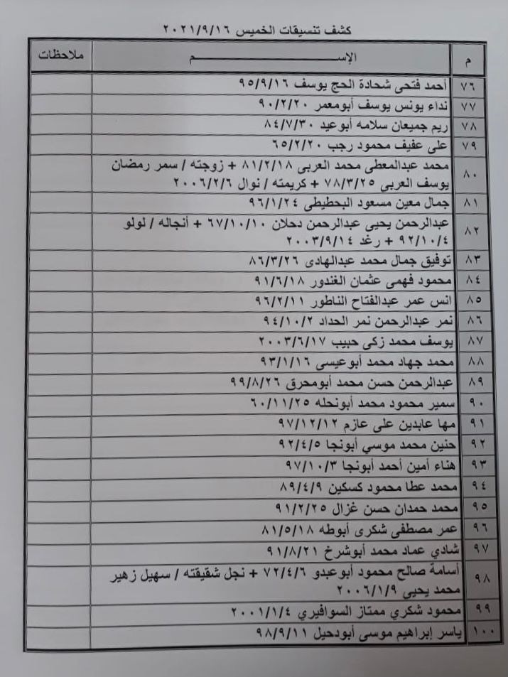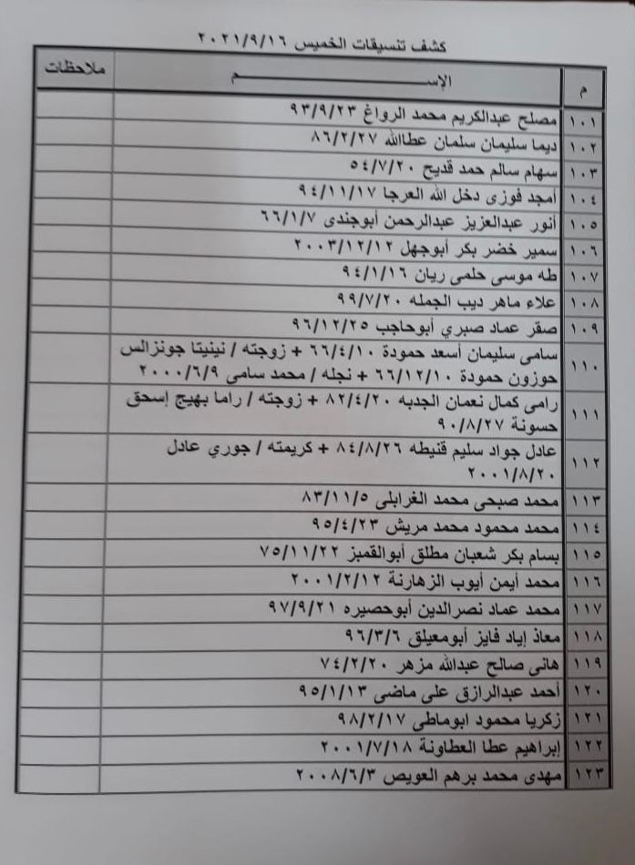 تعلن الهيئة العامة للمعابر والحدود بوزارة الداخلية والأمن الوطني عن وصول كشف "تنسيقات مصرية" للسفر عبر معبر رفح البري يوم غد الخميس (16 سبتمبر)، والذين عليهم التوجه لإجراء فحص كورونا اليوم الأربعاء بدءاً من الساعة 9 صباحاً في المراكز الصحية المعلن عنها مسبقاً بجميع المحافظات.