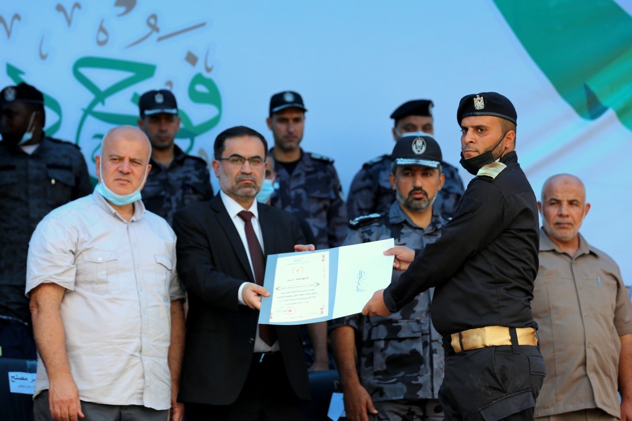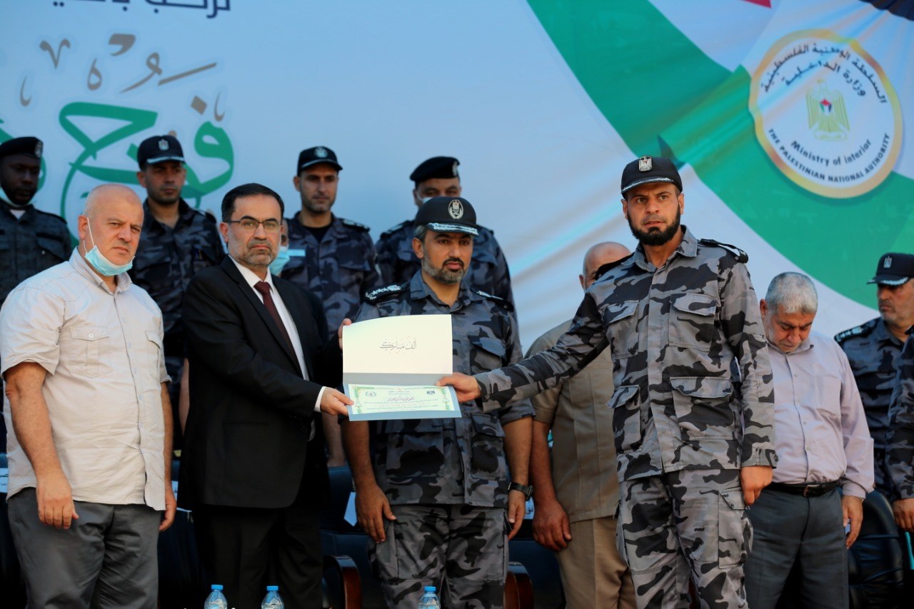 وحضر حفل التخريج، كلٌّ، نائب رئيس متابعة العمل الحكومي م. محمد الفرا، ووكيل وزارة الداخلية والأمن الوطني اللواء ناصر مصلح، والنائب العام المستشار ضياء المدهون، ومساعد وكيل وزارة الداخلية أ. سامي نوفل، ومدير عام قوى الأمن الداخلي اللواء محود أبو وطفة، ونائب قائد قوات الأمن العام اللواء جمال الجراح.