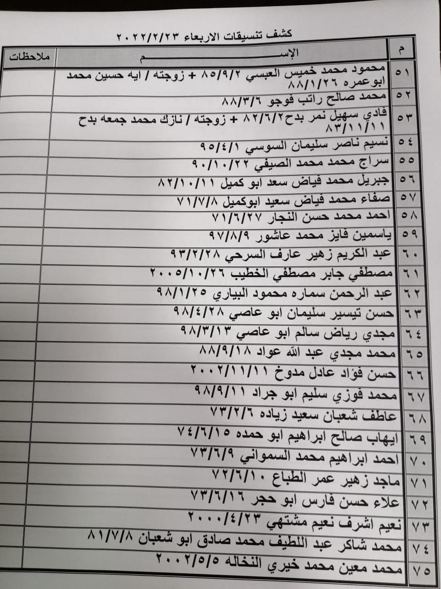 تعلن الهيئة العامة للمعابر والحدود بوزارة الداخلية والأمن الوطني عن وصول كشف "تنسيقات مصرية" للسفر عبر معبر رفح البري يوم الأربعاء (23 فبراير)، والذين عليهم التوجه لإجراء فحص كورونا بدءاً من الساعة 9 صباح الثلاثاء في المراكز الصحية المعلن عنها مسبقاً بجميع المحافظات.