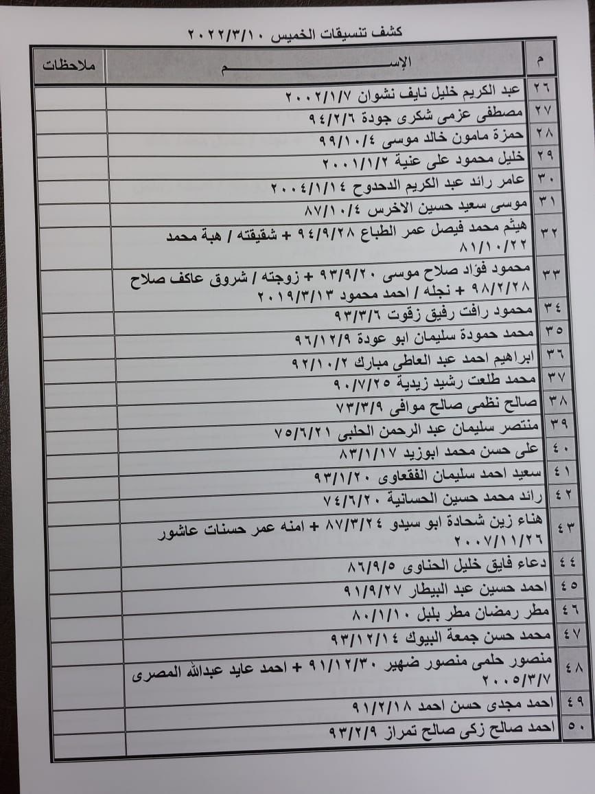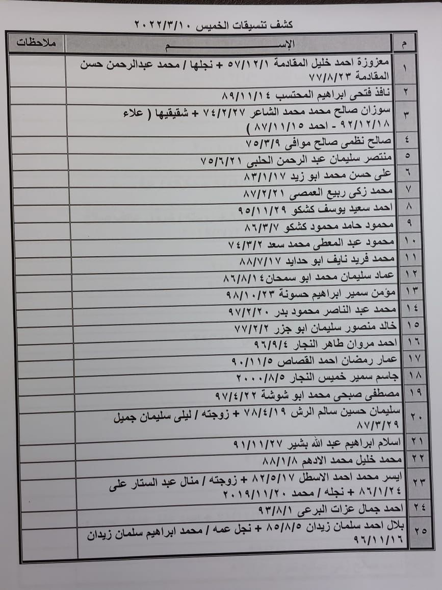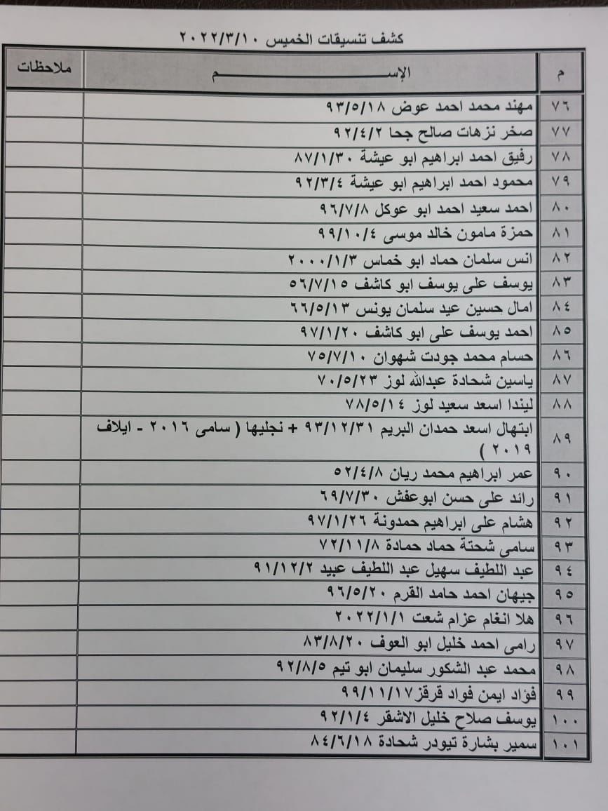 تعلن الهيئة العامة للمعابر والحدود بوزارة الداخلية والأمن الوطني عن وصول كشف "تنسيقات مصرية" للسفر عبر معبر رفح البري يوم الخميس (10 مارس)، والذين عليهم التوجه لإجراء فحص كورونا بدءاً من الساعة 9 صباح الأربعاء في المراكز الصحية المعلن عنها مسبقاً بجميع المحافظات.