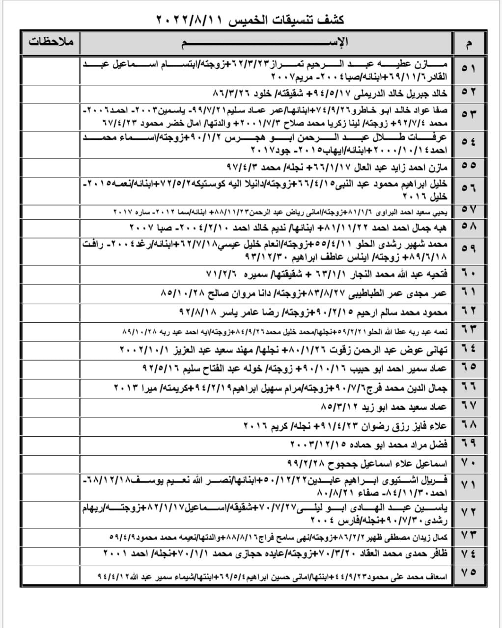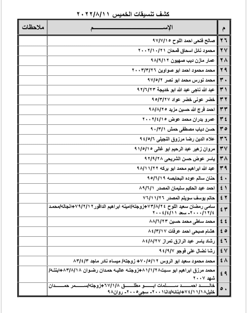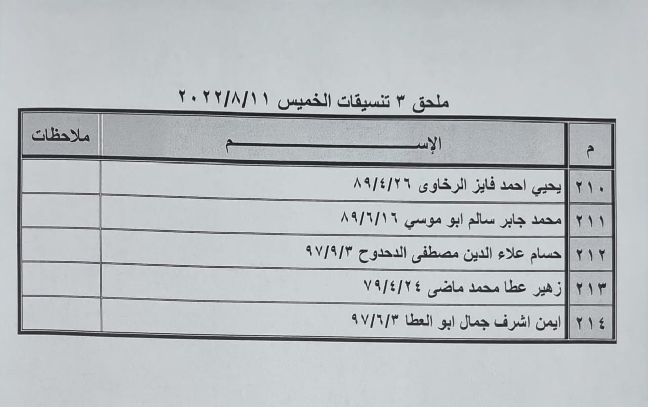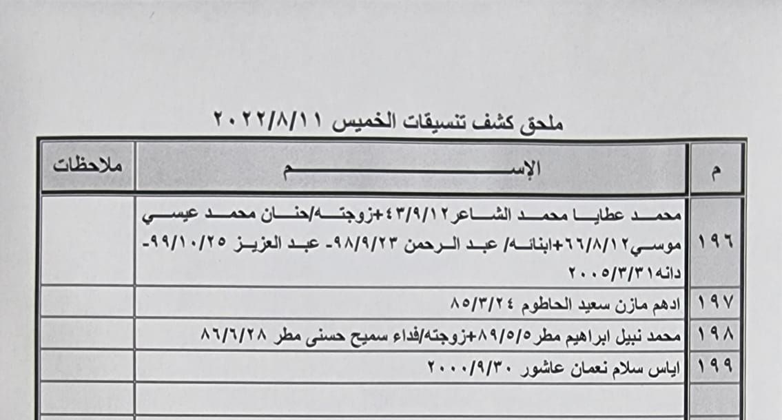 تعلن الهيئة العامة للمعابر والحدود بوزارة الداخلية والأمن الوطني عن وصول كشف "تنسيقات مصرية" للسفر عبر معبر رفح البري يوم الخميس (11 أغسطس)، والذين عليهم التواجد س 8:00 صباحاً في الصالة الخارجية للمعبر لتسهيل سفرهم.