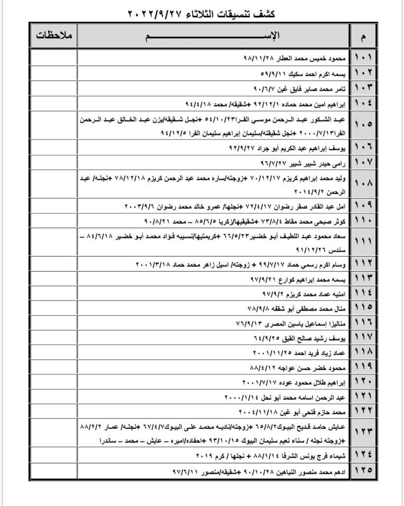 تعلن الهيئة العامة للمعابر والحدود بوزارة الداخلية والأمن الوطني عن وصول كشف "تنسيقات مصرية" للسفر عبر معبر رفح البري يوم غد الثلاثاء (27 سبتمبر)، والذين عليهم التواجد س 8:00 صباحاً في الصالة الخارجية للمعبر لتسهيل سفرهم.