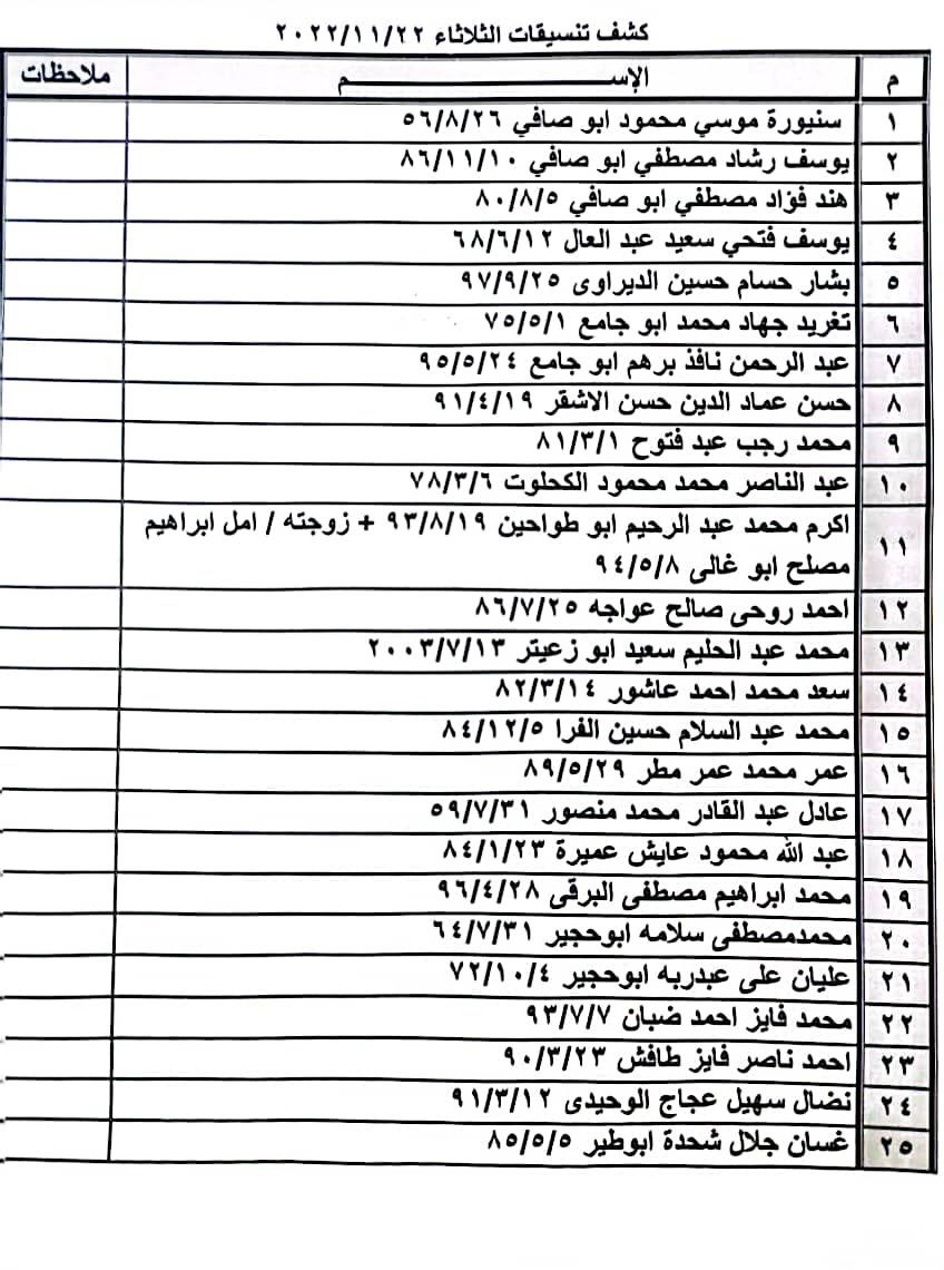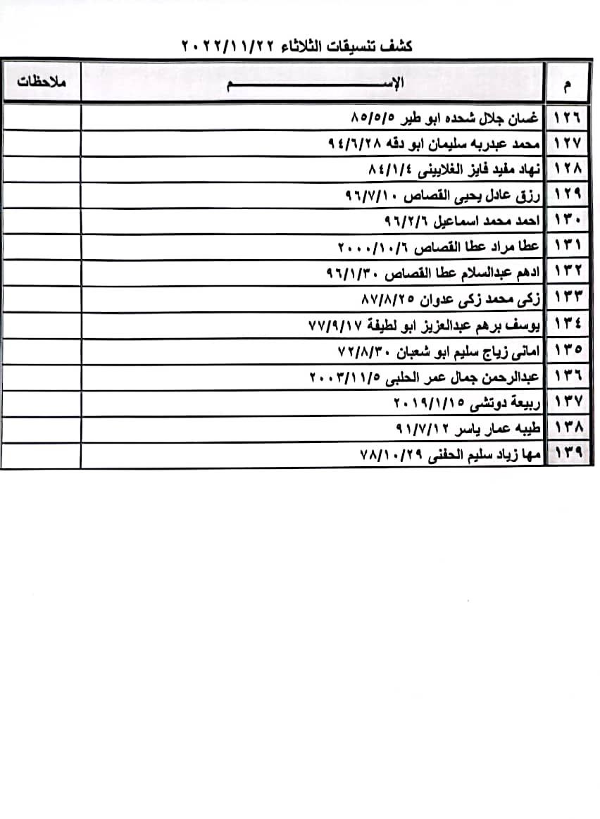 تعلن الهيئة العامة للمعابر والحدود بوزارة الداخلية والأمن الوطني عن وصول كشف "تنسيقات مصرية" للسفر عبر معبر رفح البري يوم غد الثلاثاء (22 نوفمبر)، والذين عليهم التواجد س 7:00 صباحاً في الصالة الخارجية للمعبر لتسهيل سفرهم.
