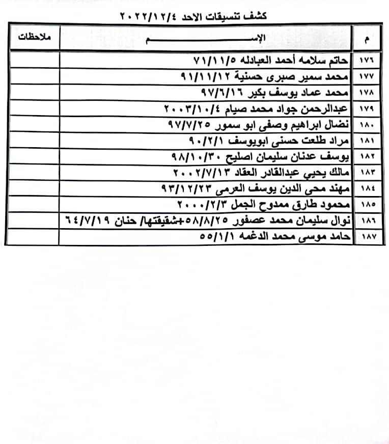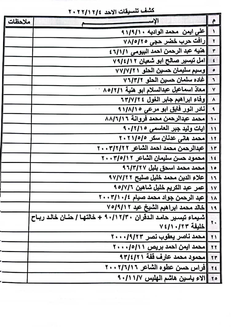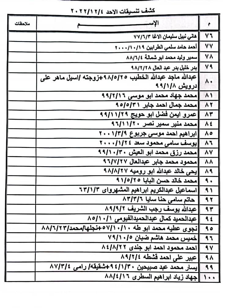 تعلن الهيئة العامة للمعابر والحدود بوزارة الداخلية والأمن الوطني عن وصول كشف "تنسيقات مصرية" للسفر عبر معبر رفح البري يوم غد الأحد (4 ديسمبر)، والذين عليهم التواجد س 7:00 صباحاً في الصالة الخارجية للمعبر لتسهيل سفرهم.