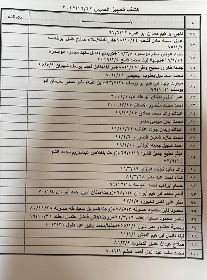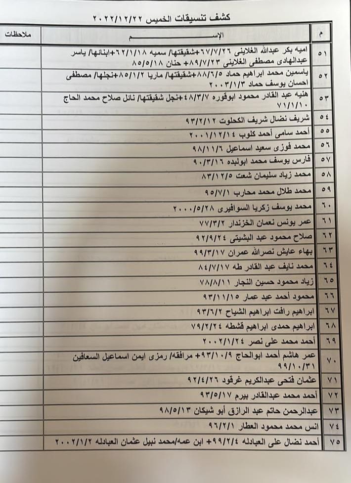 تعلن الهيئة العامة للمعابر والحدود بوزارة الداخلية والأمن الوطني عن وصول كشف "تنسيقات مصرية" للسفر عبر معبر رفح البري يوم الخميس (22 ديسمبر)، والذين عليهم التواجد س 7:00 صباحاً في الصالة الخارجية للمعبر لتسهيل سفرهم.