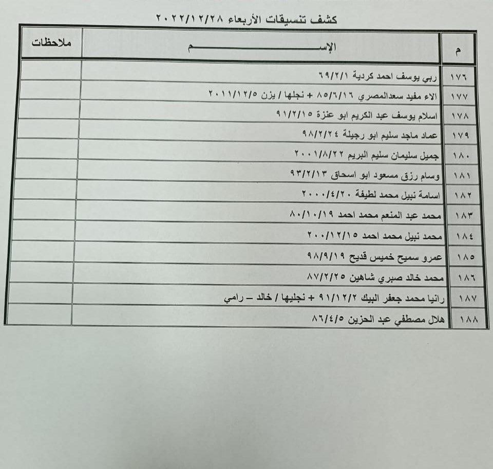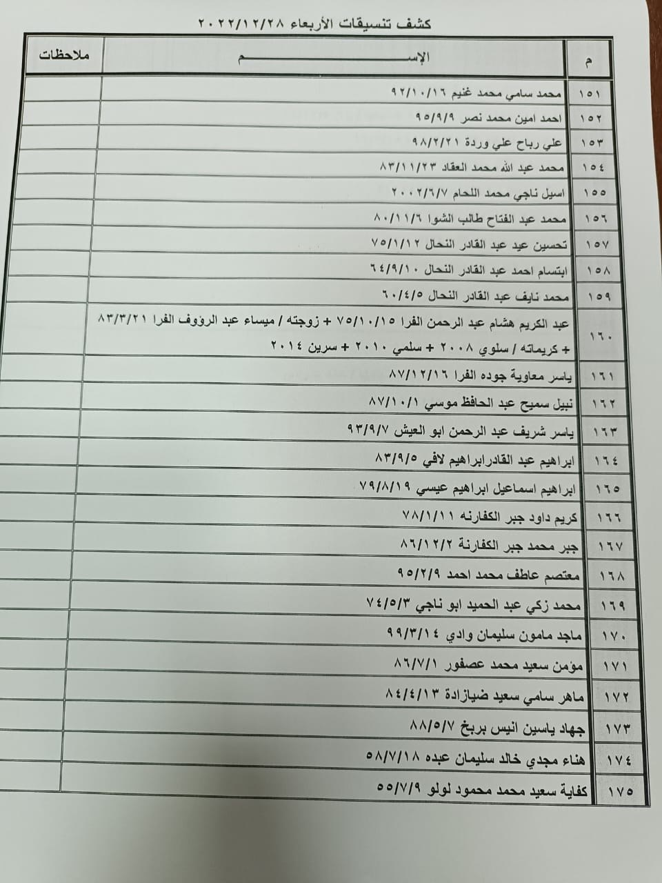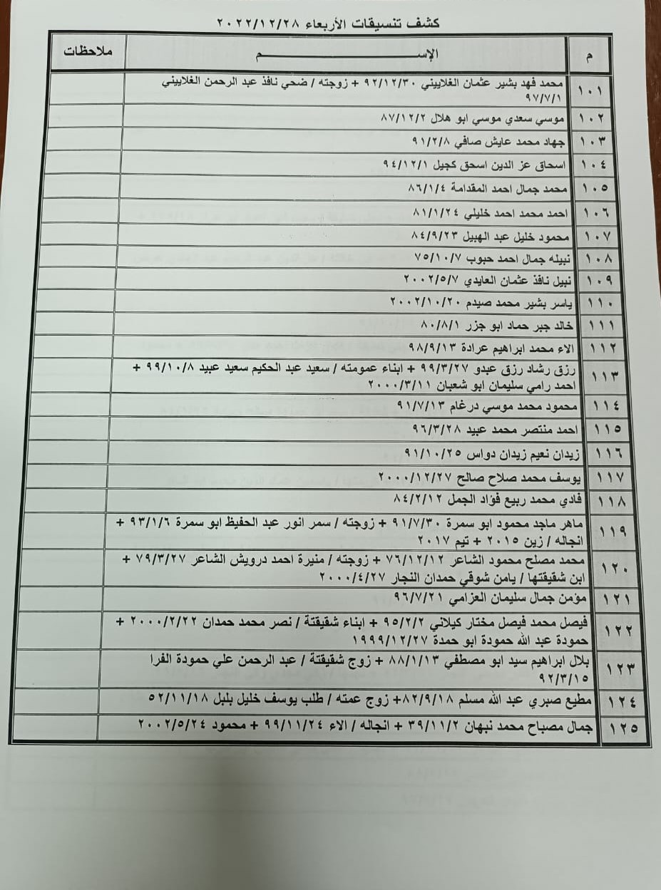 تعلن الهيئة العامة للمعابر والحدود بوزارة الداخلية والأمن الوطني عن وصول كشف "تنسيقات مصرية" للسفر عبر معبر رفح البري يوم الأربعاء (28 ديسمبر)، والذين عليهم التواجد س 7:00 صباحاً في الصالة الخارجية للمعبر لتسهيل سفرهم.