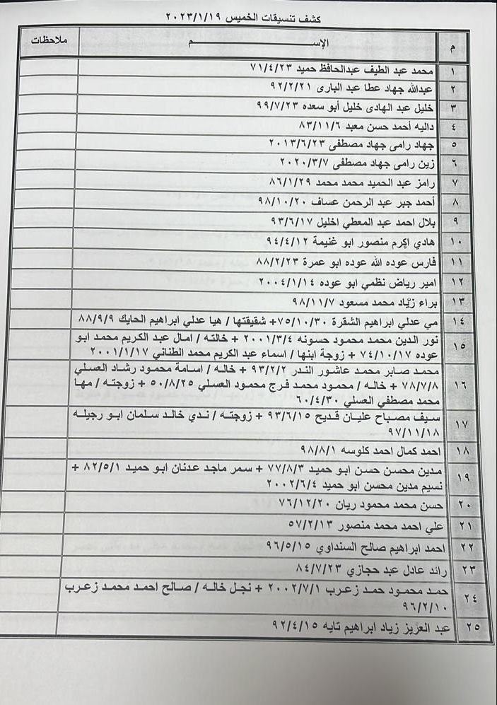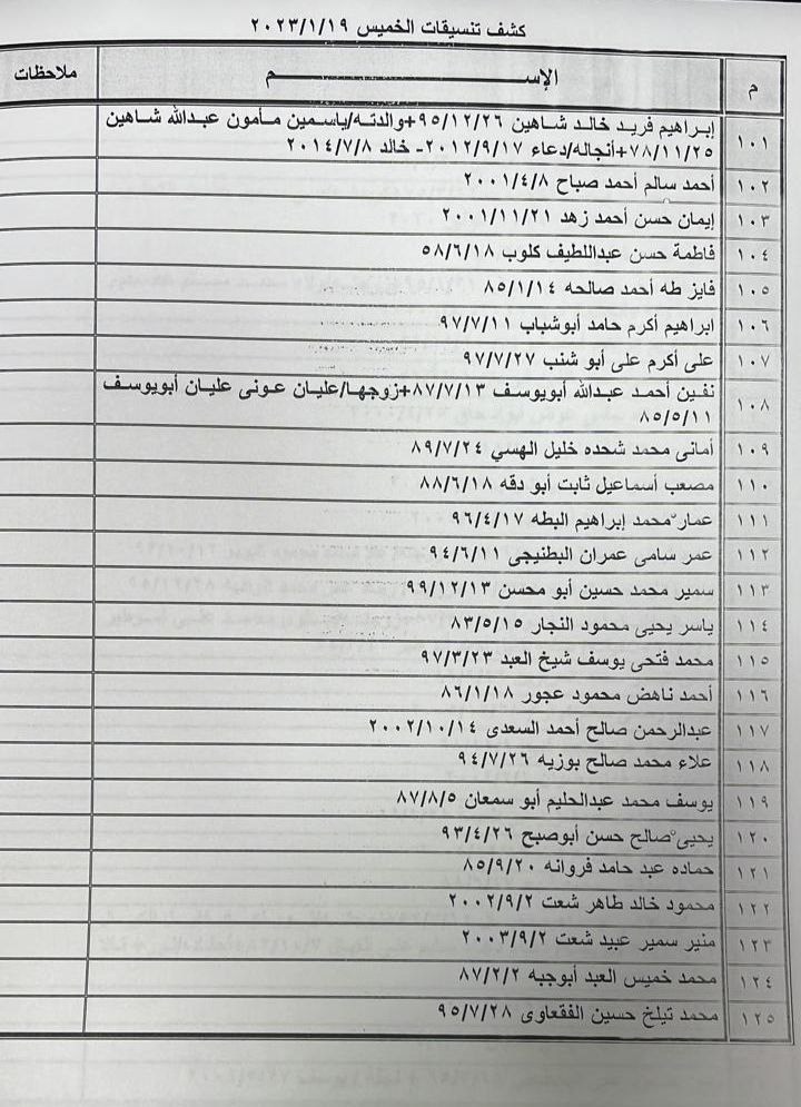 تعلن الهيئة العامة للمعابر والحدود بوزارة الداخلية والأمن الوطني عن وصول كشف "تنسيقات مصرية" للسفر عبر معبر رفح البري يوم غد الخميس (19 يناير)، والذين عليهم التواجد س 7:00 صباحاً في الصالة الخارجية للمعبر لتسهيل سفرهم.