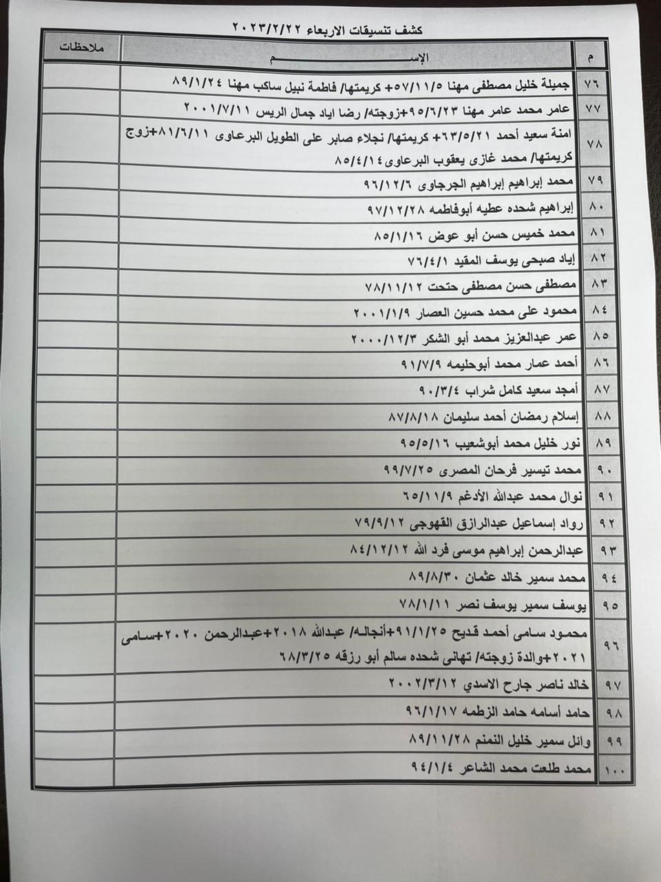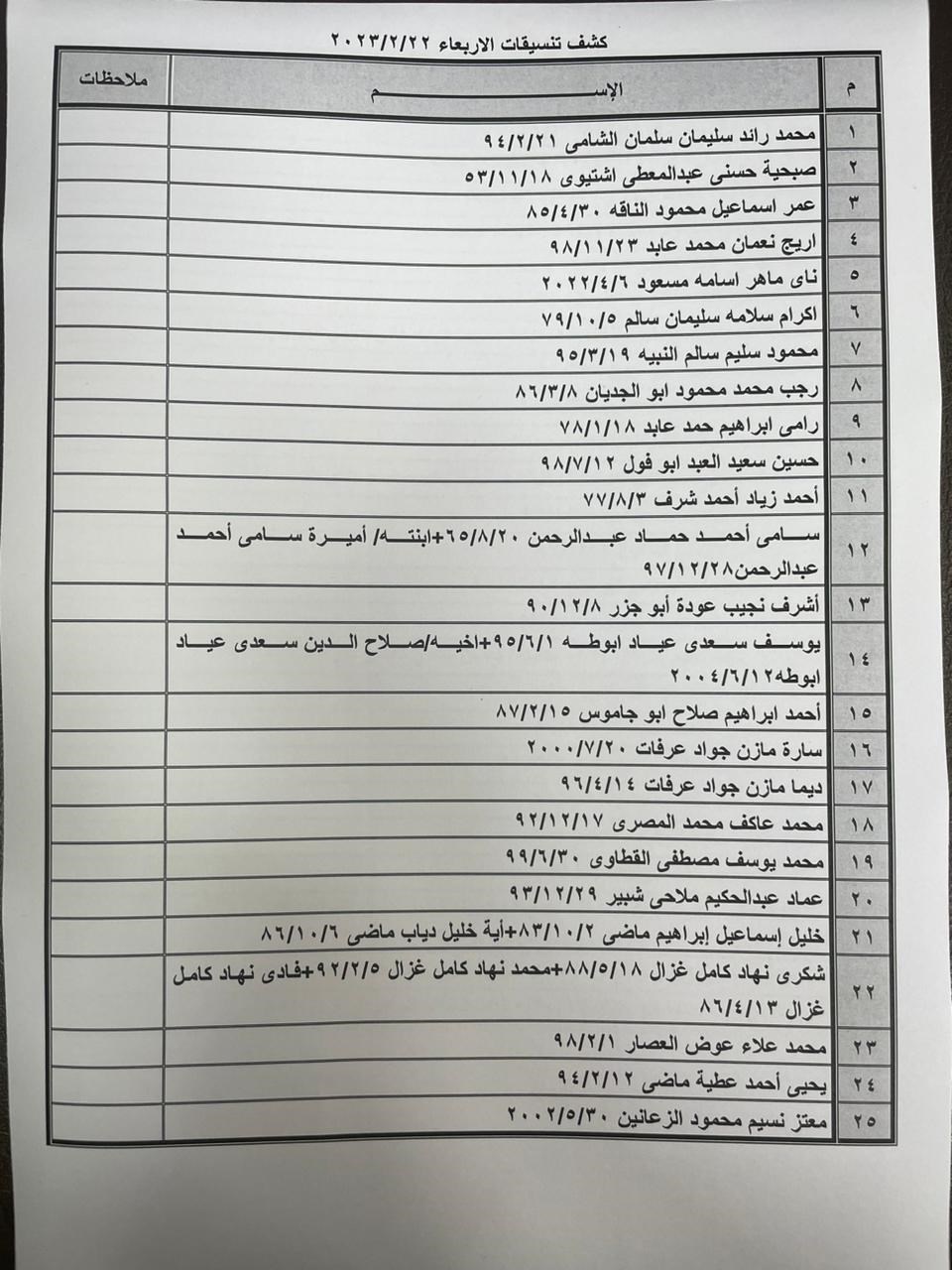 تعلن الهيئة العامة للمعابر والحدود بوزارة الداخلية والأمن الوطني عن وصول كشف "تنسيقات مصرية" للسفر عبر معبر رفح البري يوم الأربعاء (22 فبراير)، والذين عليهم التواجد س 7:00 صباحاً في الصالة الخارجية للمعبر لتسهيل سفرهم.
