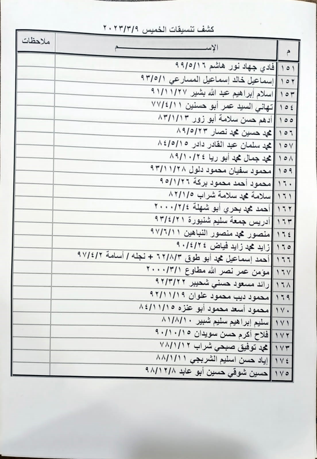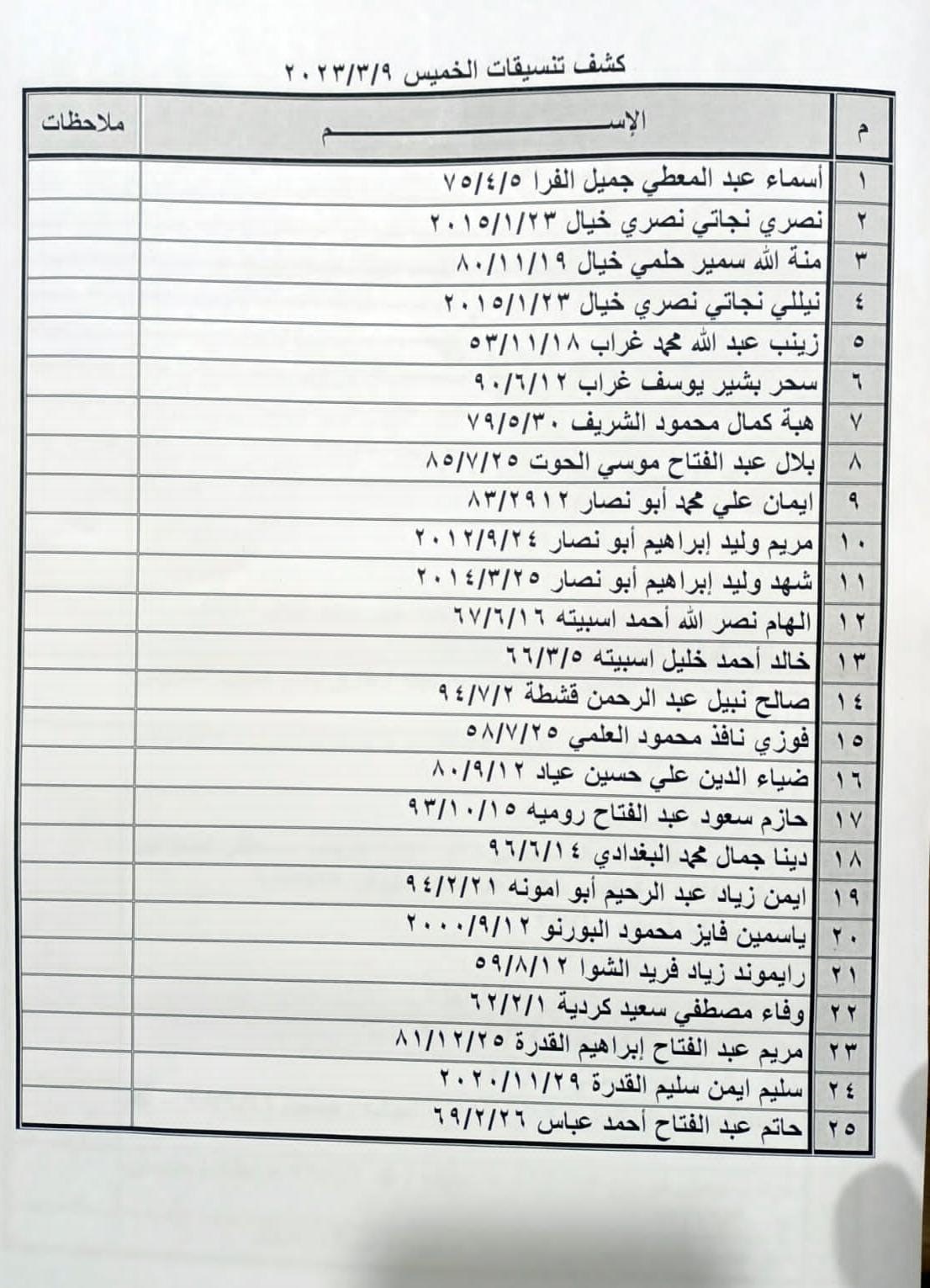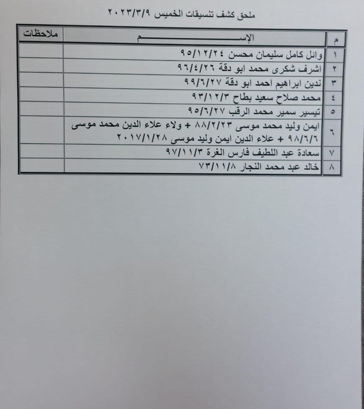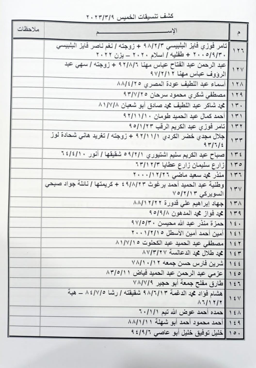 تعلن الهيئة العامة للمعابر والحدود بوزارة الداخلية والأمن الوطني عن وصول كشف "تنسيقات مصرية" للسفر عبر معبر رفح البري يوم الخميس (9 مارس)، والذين عليهم التواجد س 7:00 صباحاً في الصالة الخارجية للمعبر لتسهيل سفرهم.