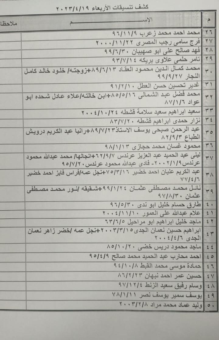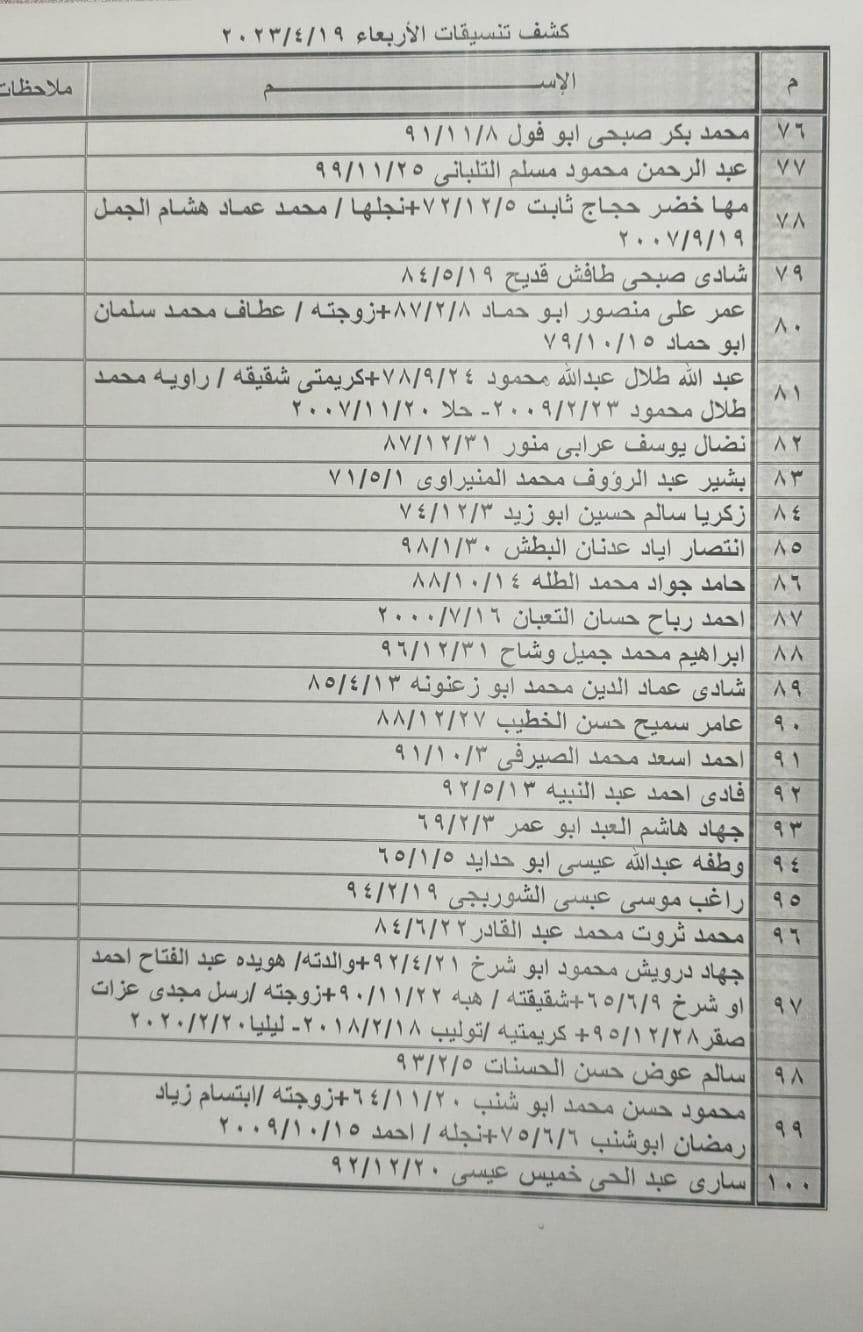 تعلن الهيئة العامة للمعابر والحدود بوزارة الداخلية والأمن الوطني عن وصول كشف "تنسيقات مصرية" للسفر عبر معبر رفح البري يوم الأربعاء (19 أبريل)، والذين عليهم التواجد س 7:00 صباحاً في الصالة الخارجية للمعبر لتسهيل سفرهم.