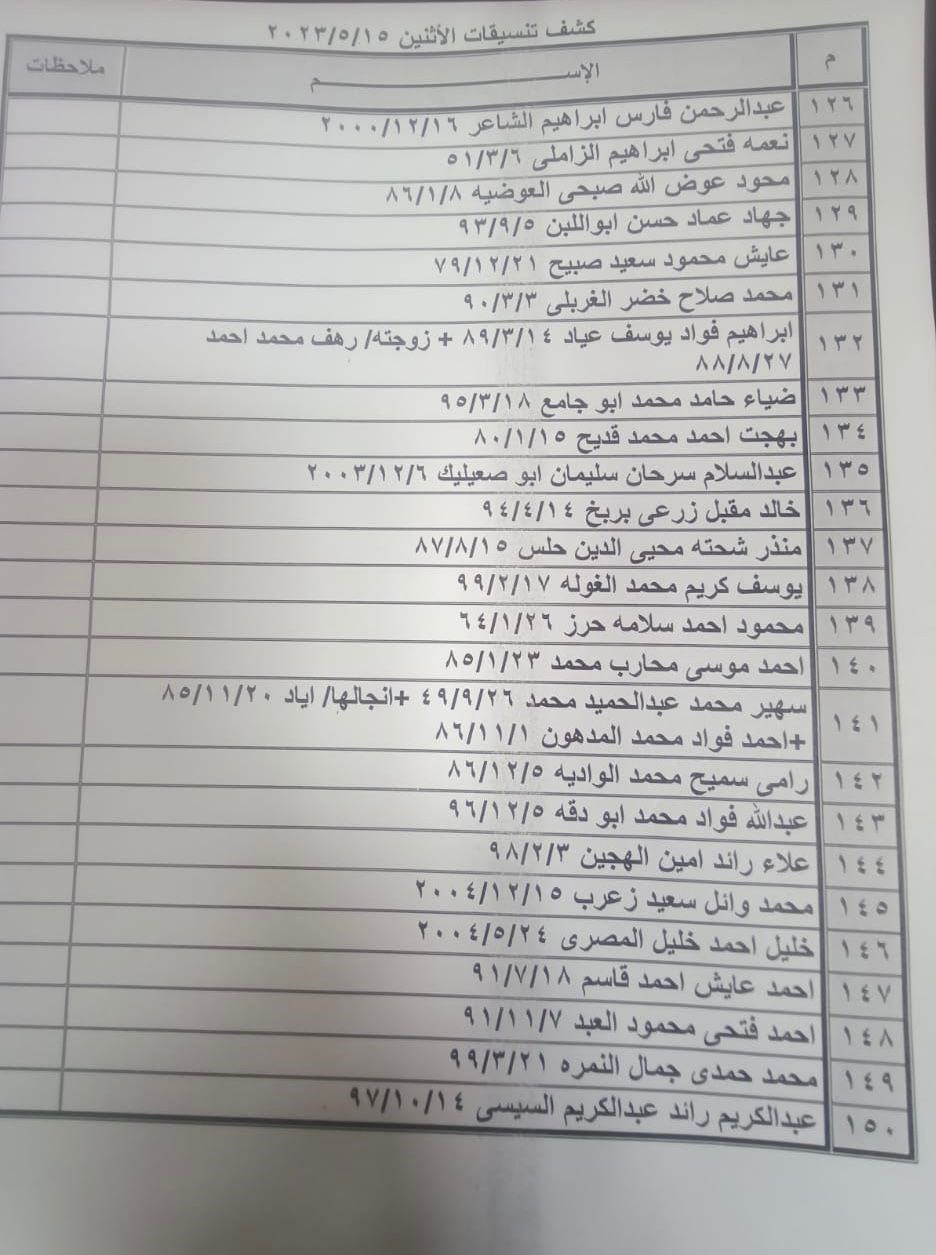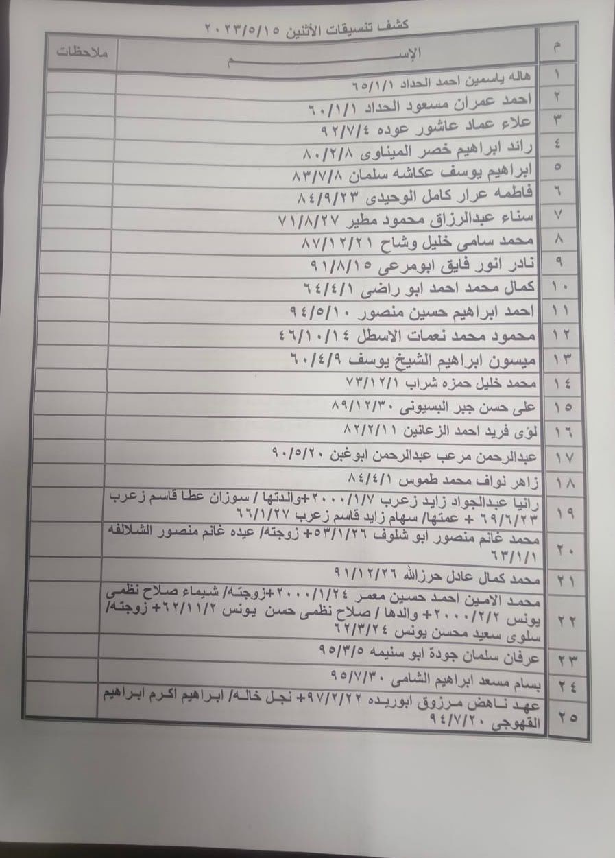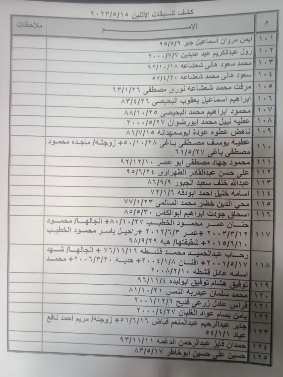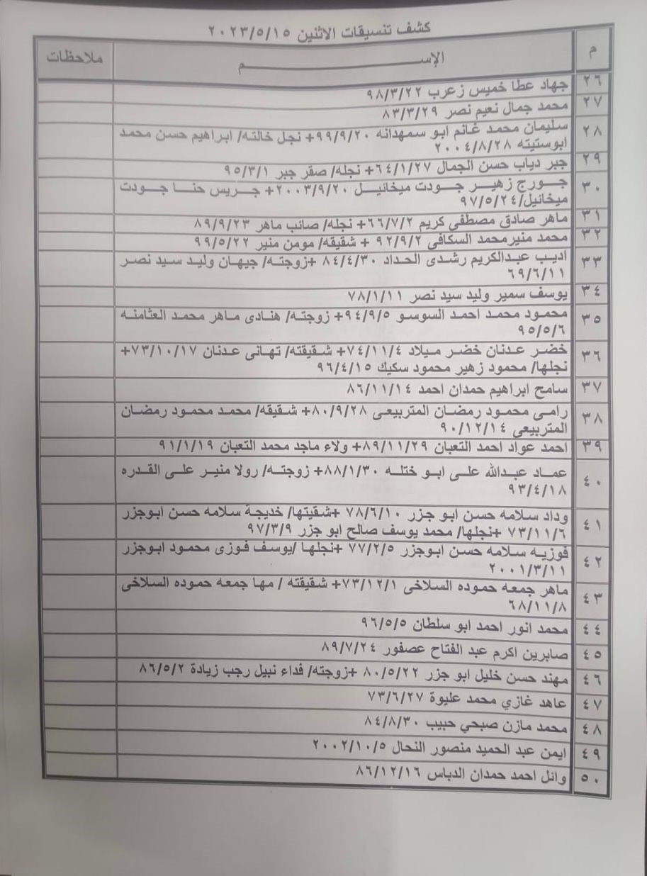 تعلن الهيئة العامة للمعابر والحدود بوزارة الداخلية والأمن الوطني عن وصول كشف "تنسيقات مصرية" للسفر عبر معبر رفح البري يوم الإثنين (15 مايو)، والذين عليهم التواجد س 7:00 صباحاً في الصالة الخارجية للمعبر لتسهيل سفرهم.