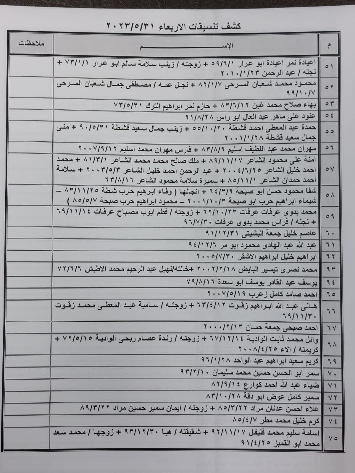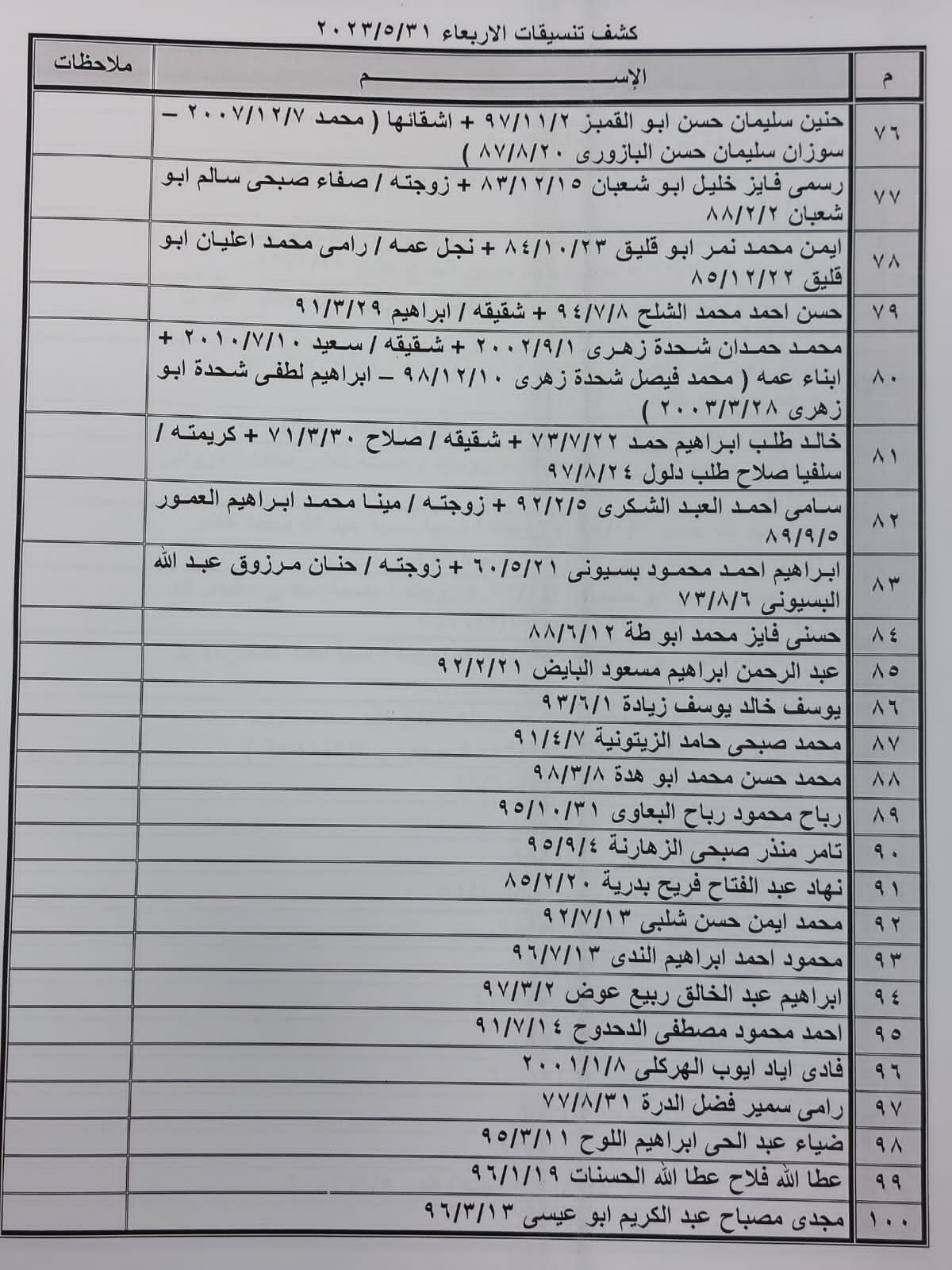 تعلن الهيئة العامة للمعابر والحدود بوزارة الداخلية والأمن الوطني عن وصول كشف "تنسيقات مصرية" للسفر عبر معبر رفح البري يوم الأربعاء (31 مايو)، والذين عليهم التواجد س 7:00 صباحاً في الصالة الخارجية للمعبر لتسهيل سفرهم.