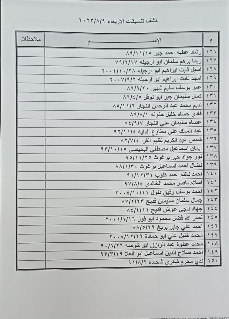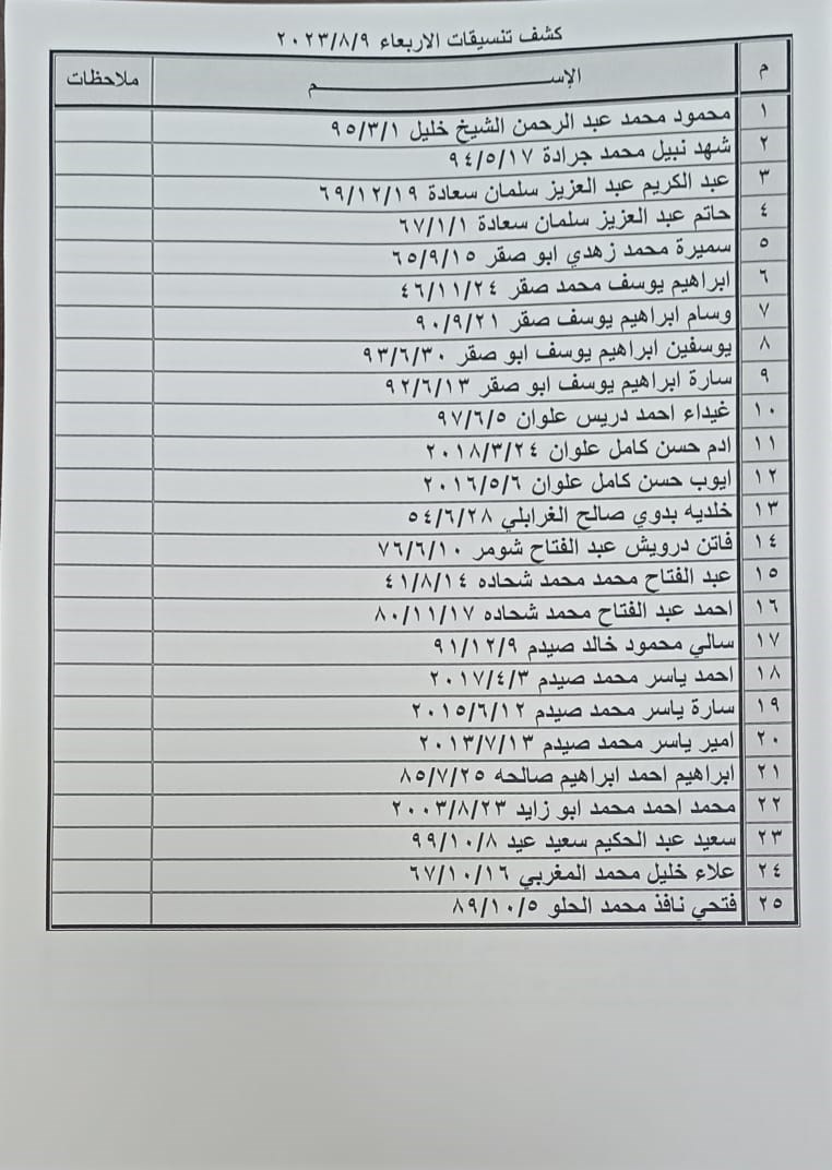 تعلن الهيئة العامة للمعابر والحدود بوزارة الداخلية والأمن الوطني عن وصول كشف "تنسيقات مصرية" للسفر عبر معبر رفح البري يوم الأربعاء (9 أغسطس)، والذين عليهم التواجد س 7:00 صباحاً في الصالة الخارجية للمعبر لتسهيل سفرهم.
