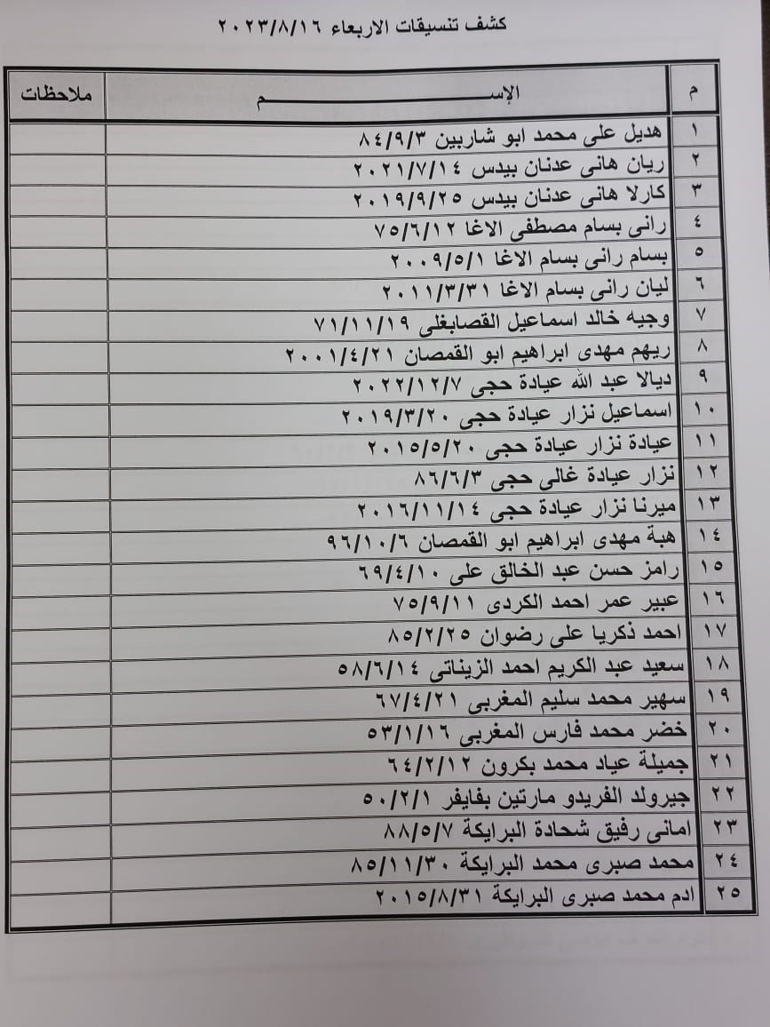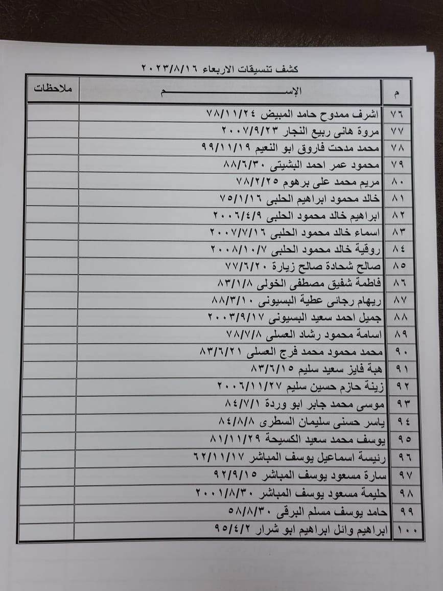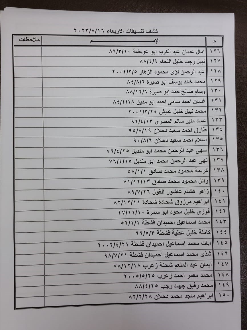 تعلن الهيئة العامة للمعابر والحدود بوزارة الداخلية والأمن الوطني عن وصول كشف "تنسيقات مصرية" للسفر عبر معبر رفح البري يوم الأربعاء (16 أغسطس)، والذين عليهم التواجد س 7:00 صباحاً في الصالة الخارجية للمعبر لتسهيل سفرهم.