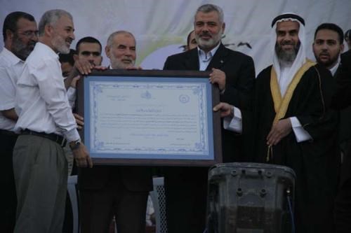 كرم رئيس الوزراء إسماعيل هنية الطبيب الإماراتي د.مازن الهاجري استشاري جراحة الأنف والأذن والحنجرة وأورام الرأس والرقبة على ما قدمه لأبناء فلسطين، والذي يزور قطاع غزة في مهمة إنسانية تتمثل في إجراء عمليات جراحية لمرضى الصم.