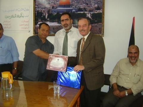 وفي ختام حفل التكريم وزّع أ.عبد القادر أبوعلي شهادات التقديروالجوائز للموظفين المتقاعدين والحاصلينعلى درجة الماجستير تقديرالجهودهم وثناء على أدائهمالمميز.