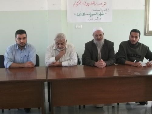 بدوره تحدث الأستاذ أمين دبور أستاذ العلوم السياسية بالجامعة الإسلامية عن المراحل التي مرت بها القضية الفلسطينية وعن طبيعة المفاوضات من بدايتها وحتى اليوم وعن مستقبل القضية الفلسطينية.