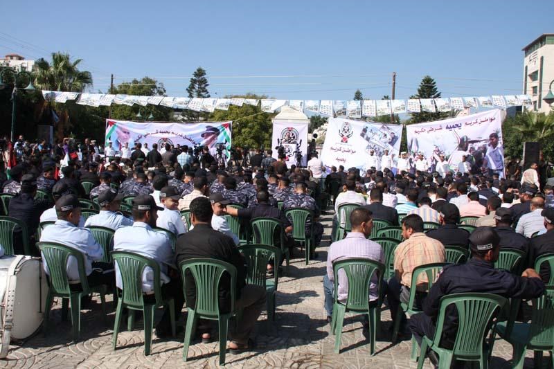 ونوه وزير الداخلية إلى أن الشرطي الحكيم هو الذي تقدم للعمل في وقت استنكف فيه الكثير من عناصر الأجهزة الأمنية البائدة، مؤكداً أن الشرطي الفلسطيني ثبت ونسف التنسيق الأمني واستبدله بحماية ظهر المقاومة وملاحقة ومحاكمة كل من يثبت عليه انه يعمل ضد المقاومة ويتخابر مع الاحتلال.