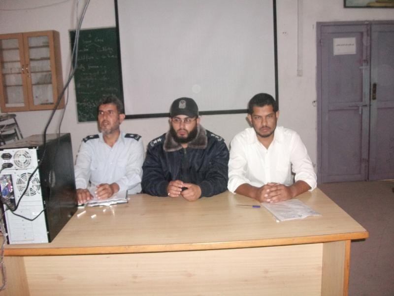 وحيث تحدث في المحاضرة ملازم أول. ماجد كلوب والملازم أول. زاهر أبو هويشل من التوجيه السياسي بعض الإرشادات والقوانين مرورية وعن بعض واجبات الشرطي و عن أسباب الانحراف والجريمة وسبل الوقاية منها و عن الصحبة الصالحة .