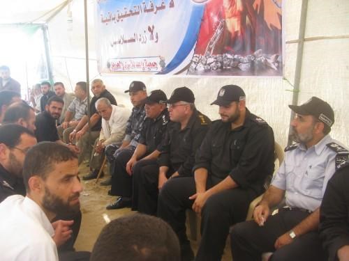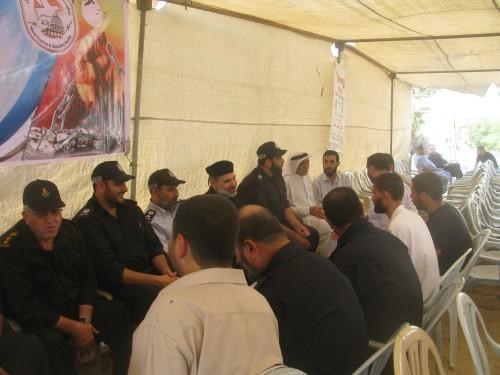 زار وفد من قيادة شرطة محافظة خان يونس والعقيد / كمال أبو الندى والمقدم / معتز الخالدي مدير العلاقات العامة بالشرطة ووفد اللجنة المركزية لحملة ال 50 يوم بشرطة محافظة خان يونس الأسير المحرر / عادل حامد الذي أفرجت عنه قوات الاحتلال بعد قضاء 17 عام في سجون الاحتلال .