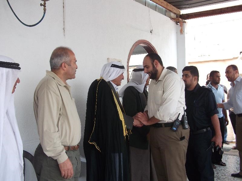 A delegation of Khan Younis police headed by Col. Ahmed Al-Qedra , Basel Al-Ghalban , the director of police city, Nedal Kulab , the director of general relation , Col. Ala'a Abu Shamalla , the director of Al-Qarara police , and a number of officers , have visited the divan of Al-Semeri family.