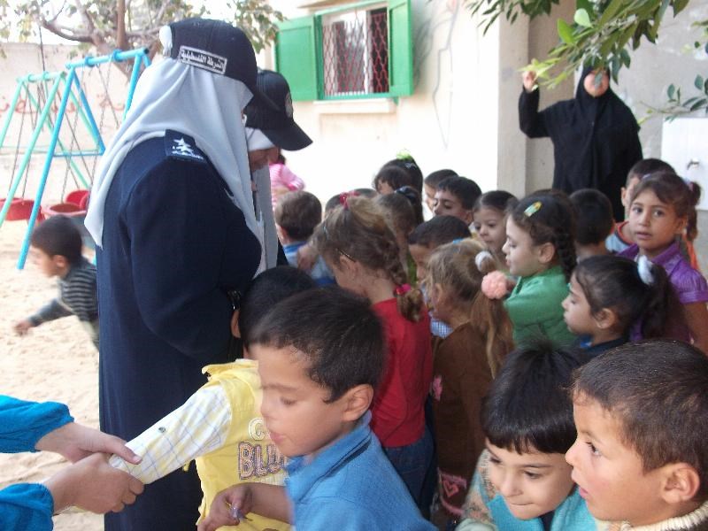 كما زارت عناصر من الشرطة النسائية روضة براعم السنة، وأبدى القائمون على الروضة سعادتهم بهذه الزيارة وقاموا برسم الشرطي الفلسطيني  وفي ختام الزيارة  وقامت بتوزيع الحلوى على الأطفال.