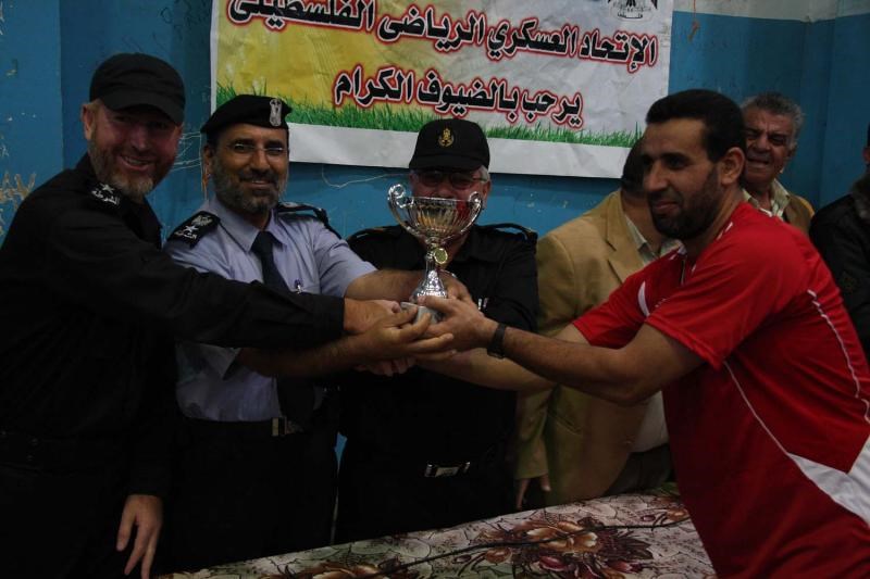 شمال غزة / الداخلية عقد الإتحاد العسكري الرياضي للشرطة مساء أمس مبارتين وديتين لكرة القدم والطائرة بنادي شباب جباليا في شمال قطاع غزة ضمن حملة الـ50 يوم التي بعنوان كرامة المواطن وهيبة الشرطي والتي أطلقتها وزارة الداخلية والأمن الوطني في السابع من نوفمبر الجاري لتعزيز العلاقة بين المواطن ورجل الأمن والشرطة في قطاع غزة. وحضر المباراة رئيس الحملة العقيد كمال أبو ندى ومحافظ شرطة الشمال المقدم وائل رجب ومدير الإتحاد العسكري الرياضي نبيل حمتو ومدير العلاقات العامة المقدم معتز الخالدي والمقدم فايز حسان ورئيس نادي شباب جباليا . وشارك فريق شرطة الشمال في المبارتين حيث ابتدأت المباراة الأولي لكرة الطائرة بين فريق الشرطة ونادي شباب بيت لاهيا وقد أحرز فريق شرطة الشمال 2 مقابل 0 لفريق نادي بيت لاهيا . فيما شهدت المباراة الثانية لكرة القدم بين فريق شرطة الشمال وفريق نادي بيت حانون وقد فاز الشمال بهدفين مقابل 0 في ركلات الترجيح علي فريق بيت حانون. وكرم رئيس الحملة العقيد كمال أبو ندي ووفد الشرطة والاتحاد العسكري الرياضي الفريق الفائز الذي حصل علي المدليات الذهبية فيما حصل فريق نادي بيت لاهيا وبيت حانون علي المدليات الفضية .