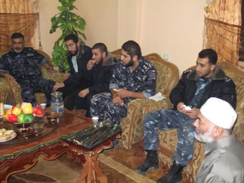 ومن جانبه زار إدارة امن الشرطة العديد من منازل المواطنين وتقديم التهاني لهم لقدهم إلي ارض فلسطين وكما زارت إدارة امن العديد من منازل المواطنين .
