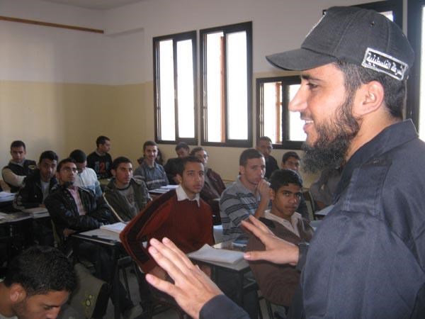غزة- دائرة الإعلام بالداخلية : نظم وفد من هيئة التوجيه السياسي والمعنوي بمحافظة غزة يتقدم مدير محافظة غزة الرائد أسامة رضوان والنقيب حلمي عبد العال وشرطة محافظة غزة ومركز شرطة العباس في زيارة مدرسة الكرمل الثانوية للبنين. وشارك بالإضافة للوفد هيئة التوجيه السياسي المقدم جهاد الشوبكي نائب مدير محافظة غزة والمقدم معتز الخالدي مدير العلاقات العامة بالشرطة الفلسطينية والمقدم أبو أمجد خلف والرائد أيمن البطنيجي مدير المكتب الإعلامي بالشرطة والرائد أبو محمد الزميلي مسئول الرقابة والتفتيش بالشرطة والرائد علاء البطش مدير مركز العباس ونائبه أبو مصعب الشرفا والنقيب أبو جميل رجب مسئول العلاقات العامة بمحافظة غزة والملازم أول أبو جهاد الشيخ خليل مسئول الإعلام في المحافظة ومجموعة من الضباط. وكان في استقبال الوفد في مدرسة الكرمل الأستاذ ماجد ياسين مدير المدرسة ومجموعة من المدرسين والطلاب. وتحدث الرائد أيمن البطنيجي بكلمة حول حملة "كرامة المواطن وهيبة الشرطي" في طابور الصباح وقام الطلاب أجمعين بتحية وفد الشرطة ثم قام الوفد بجولة على الصفوف المدرسة. وتحدث الوفد مع الطلاب حول المشاكل وطلاب من، وطلب من الطلاب كتاب موضوع تعبير ورسم صور لتعبير عن رأيهم في الشرطة وتسليم مقترحاتهم، وغلب على الزيارة المودة المحبة. وقد طلب مدير المدرسة من الوفد بأن يزيدوا من هذه النشاطات وأن يكون لشرطة درس أسبوعي، وفي ختام الجولة تم عقد مباراة بين الوفد المدرسين وتغلب فيها المدرسين.