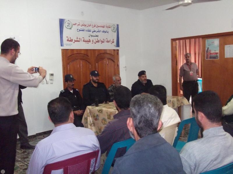 نظمت هيئة التوجيه السياسي والمعنوي بمحافظة رفح والشرطة الفلسطينية زيارة إلى نقابة المهندسين في المحافظة وذلك ضمن حملة كرامة المواطن وهيبة الشرطي.