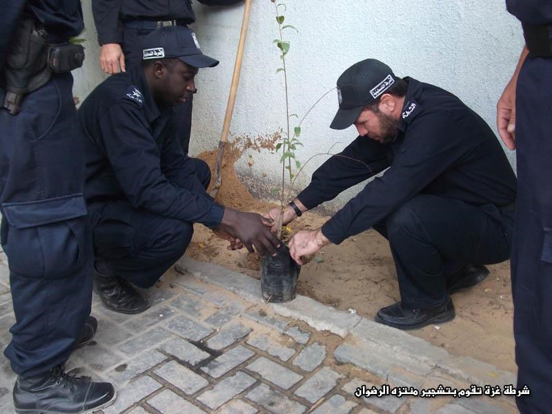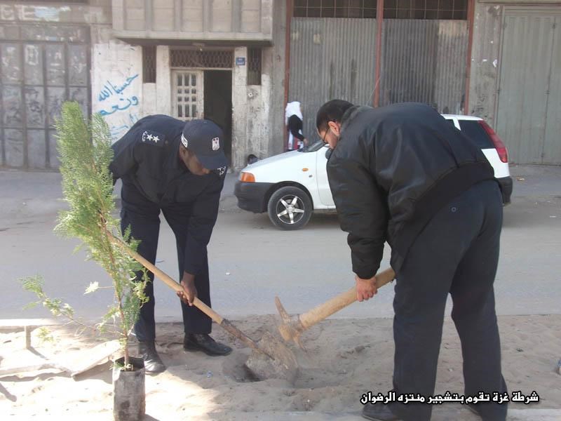 غزة – الداخلية نظمت قيادة شرطة محافظة غزة فعالية تطوعية صباح الأحد ، حيث قامت بتشجير محيط مسجد عمار بن ياسر في منطقة تل الإسلام . وشارك في الفعالية المقدم جهاد الشوبكي نائب مدير شرطة المحافظة و أ.أسامة رضوان مدير هيئة التوجيه السياسي والمعنوي بالمحافظة والنقيب مازن حرارة مدير أمن الشفاء . وقام أفراد الشرطة باستصلاح أرض بجانب المسجد كانت مكباً للنفايات وزرع شتلات زراعية مكانها . وفي ذات السياق قام أفراد وضباط مركز شرطة الشيخ رضوان بقيادة الرائد أحمد خلة نائب مدير المركز بتشجير الشارع المقابل للمركز والمتنزه المقابل لمسجد الرضوان في منطقة الشيخ رضوان بغزة . من جانبهم أشاد المواطنون بهذه الخطوة من قبل الشرطة ، معبرين عن سعادتهم برؤيتهم جمال ونضرة الأراضي بعد زراعتها . وشكر المواطنون قيادة الشرطة على هذا الصنيع الذي يأتي في إطار فعاليات حملة كرامة المواطن وهيبة الشرطي. من جانب آخر شاركت قيادة المحافظة ولفيف من الضباط والأفراد في أداء صلاة الاستسقاء في ساحة الكتيبة بمدينة غزة بحضور د.إسماعيل هنية رئيس الوزراء . من جانبه قام مركز شرطة الشيخ رضوان بتسيير دورية لتنظيم حركة السير على مفترق شارع الجلاء مع شارع الصفطاوي للازدحام الشديد في الصباح . عقبه أداء صلاة الظهر في مصلى المركز وإلقاء أ. أسامة رضوان موعظة بعنوان " الدعاء إلى الله" . كم قام وفد من المركز بجولة زيارات للمحلات في المنطقة وعددها 20 محلا و5 بيوت بقيادة ملازم أول محمد الحجار أما مركز شرطة التفاح والدرج عقد طابور أركان صباحي تخلله كلمة الملازم أول/ علي البطش "بعنوان مخافة الله". واستكمل المركز حملة توزيع بطاقات إرشادات السلامة على بيوت المواطنين حيث بلغت حصيلة البطاقات الموزعة 4000 بطاقة . وأدى المركز صلاة الظهر في مسجد المحطة عقبها إلقاء موعظة من قبل الملازم/ تحسين طالب "بعنوان أهمية الاستغفار". كما ألقى الملازم أول على البطش موعظة "بعنوان التقرب إلي الله" على الموقوفين بنظارة المركز. وكانت شرطة امن مستشفى الشفاء بقيادة مديرها النقيب مازن حرارة قد قامت بجولة تفقدية لقسم الاستقبال بالمستشفى وعقد اجتماع مع د. عماد الفيومي مدير القسم .
