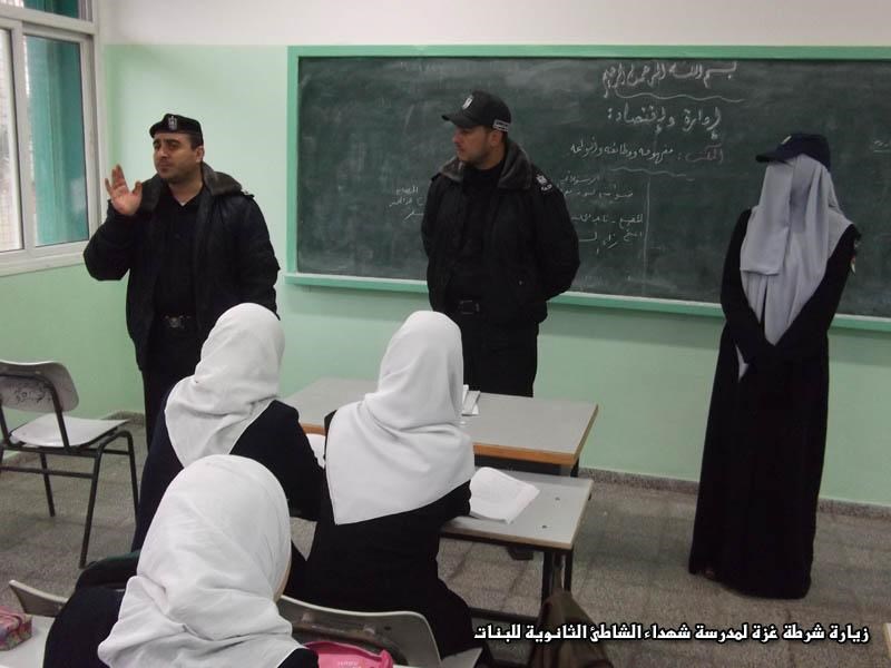 غزة – الداخلية نظمت شرطة محافظة غزة بالتعاون مع الشرطة النسائية صباح اليوم زيارة ميدانية لمدرسة شهداء الشاطئ الثانوية للبنات غرب مدينة غزة . وترأس الوفد الزائر المقدم جهاد الشوبكي نائب مدير شرطة محافظة غزة و أ.أسامة رضوان مدير هيئة التوجيه السياسي بغزة والرائد إياد الحوراني مدير مركز شرطة الشاطئ ولفيف من أفراد وضباط مركز شرطة الشاطئ والشرطة النسائية . واستقبلت مديرة المدرسة والهيئة التدريسية الوفد الشرطي بترحيب وسعادة بالغة . والتقى الوفد بالطالبات وتحاور معهن حول حملة كرامة المواطن وهيبة الشرطي وأهدافها، إلى جانب الإجابة عن أسئلة الطالبات واستفساراتهن . كما ألقى بعض الضباط محاضرات توعوية في بعض إرشادات السلامة ومهام الشرطي ، وشكرت الطالبات الوفد الشرطي على هذه الزيارة . من جانبه ألقى الداعية فارس أبو حمد موعظة إيمانية للموقوفين في نظارة مركز التفاح والدرج صباح اليوم . وتحدث الداعية عن سبل التقرب إلى الله عز وجل وأن نعيش مستشعرين مراقبته في كل لحظة . وعقب أداء ضباط وأفراد المركز صلاة الظهر في مصلى المركز ألقى أ.أسامة رضوان كلمة عن الموت وسكراته . كما زار وفد من المركز المواطن أحمد الحاج متمنين له الشفاء العاجل من مرضه الذي أصابه . أما مركز شرطة الشيخ رضوان عقد طابور أركان لضباط وأفراد المركز عقبه القيام بحملة لتنظيم البسطات والمرور في سوق الشيخ رضوان بقيادة الملازم أول نادر أبو قينص . كما قام وفد بجولة على المحلات التجارية للالتقاء بأصحابها والاستماع لمطالبهم وشكواهم . وأدى ضباط وأفراد المركز صلاة الظهر في مسجد الإيمان ألقى بعدها أ. عز الدين أبو شريعة من هيئة التوجيه السياسي والمعنوي موعظة بعنوان(الاستغفار). وتأتي هذه الفعاليات في إطار حملة " مواطن كريم يحميه شرطي حكيم " التي أطلقتها وزارة الداخلية في السابع من نوفمبر الماضي .