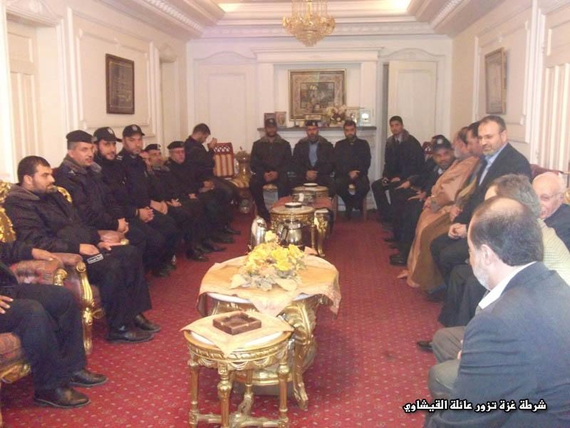زار وفد من قيادة شرطة محافظة غزة مساء أمس الاثنين عائلة القيشاوي بمنطقة الرمال بغزة، ضمن قعاليات حملة " كرامة المواطن وهيبة الشرطي " التي أطلقتها وزارة الداخلية في السابع من نوفمبر الماضي .