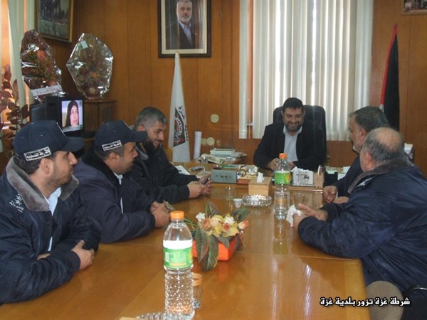 نظم وفد من قيادة شرطة محافظة غزة صباح الأربعاء زيارة ميدانية لبلدية غزة ضمن فعاليات حملة كرامة المواطن وهيبة الشرطي .