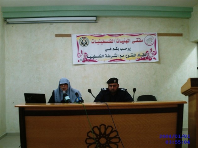 شاركت الشرطة النسائية الخميس (9/ 12)  وضمن حملة كرامة المواطن وهيبة الشرطي في اللقاء المفتوح التي عقدته بالتعاون مع ملتقى المهنيات الفلسطينيات في نقابة المهندسين .