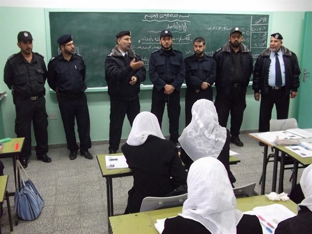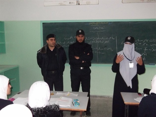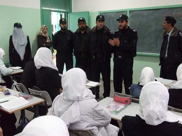 نظم وفد من هيئة التوجيه السياسي والمعنوي متمثلاً بمدير محافظة غزة الرائد أسامة رضوان والملازم أول أحمد درويش من مكتب غزة في التوجيه السياسي وشرطة محافظة غزة ومركز شرطة الشيخ رضوان زيارة مدرسة شهداء الشاطئ الثانوية للبنات.
