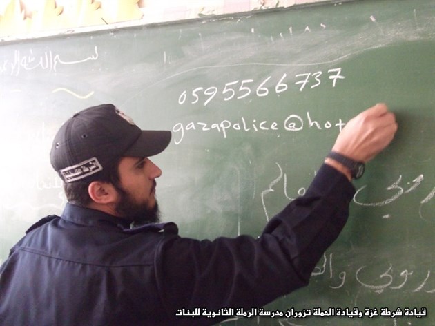 من جانبه، حذر الملازم أول علي البطش مدير عمليات مركز التفاح والدرج من المخاطر المحدقة بالطالبات في الثانوية خاصة المتمثلة في التواصل عبر الجوال والايميل والتعامل مع الانترنت، مبيناً أن الموساد الصهيوني يستعمل هذه الوسائل والأدوات الاتصالية لبث الفساد في المجتمع الفلسطيني.
