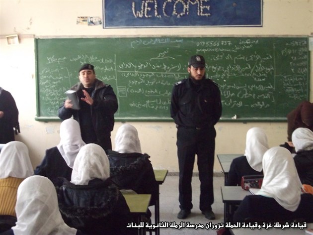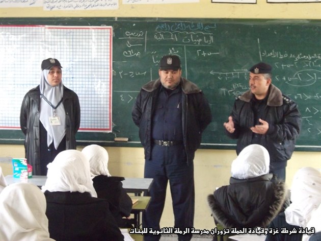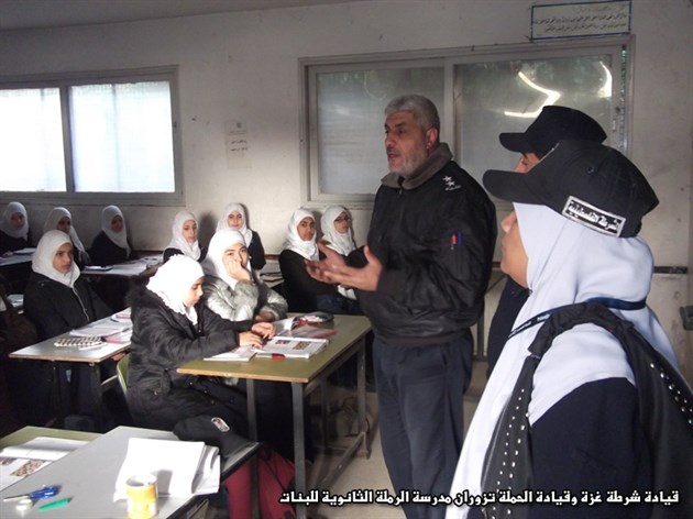 زار وفد من شرطة محافظة غزة وهيئة التوجيه السياسي والمعنوي صباح يوم الأحد (12/12) مدرسة الرملة الثانوية للبنات في حي الدرج شرق مدينة غزة.