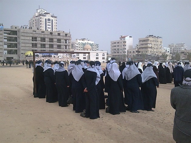 فقد انتشرت قوات الشرطة النسائية والأخوات في الأمن والحماية والأخوات في العمل الجماهيري في ساحة الكتيبة في مدينة غزة لتسد الثغرات وتحفظ الأمن .