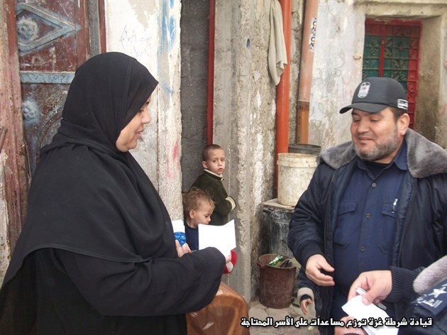 من جانبه قام مركز شرطة التفاح والدرج بتوزيع مساعدات مالية على الأسر الفقيرة في المنطقة .