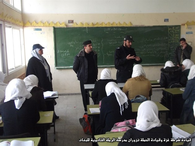 زار وفد من شرطة محافظة غزة وهيئة التوجيه السياسي والمعنوي صباح يوم الأحد (12/12) مدرسة الرملة الثانوية للبنات في حي الدرج شرق مدينة غزة.