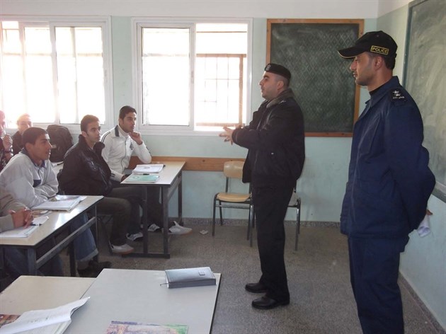 واستقبل وفد الشرطة الزائر مديرة المدرسة و أعضاء الهيئة التعليمية بالمدرسة، ورحب مدير المدرسة بوفد الشرطة الزائر وثمن دور رجال الشرطة في حفظ الأمن والأمان في المجتمع الفلسطيني.