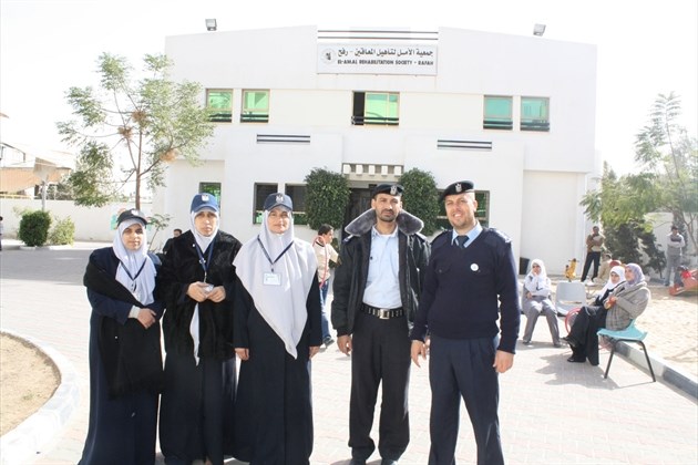 زارت الشرطة النسائية في محافظة رفح جمعية الأمل لتأهيل المعاقين ، وأفادت ملازم / حنان الحنال مسئولة محافظة رفح أنهم التقوا بفئة الصم مع وجود مترجم وقضوا وقتاً ممتعاً باللعب معهم ، كما تم عقد ورشة عمل في جمعية حواء المستقبل للنقابات المهنية بالمحافظة من خلالها تم تعريفهم بالشرطة النسائية ومهامها وطبيعة عملها ، ومن ثم بحث سبل التعاون بين الشرطة النسائية وبين النقابات المهنية .